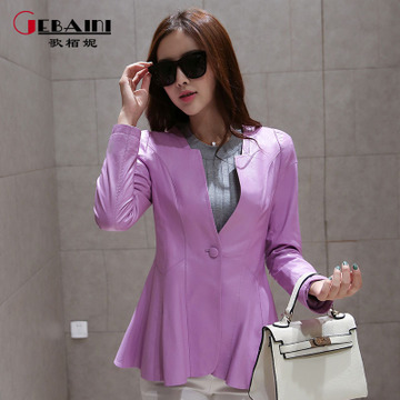 歌栢妮真皮皮衣女短款修身百褶裙下擺綿羊皮皮衣外套小西裝女 /