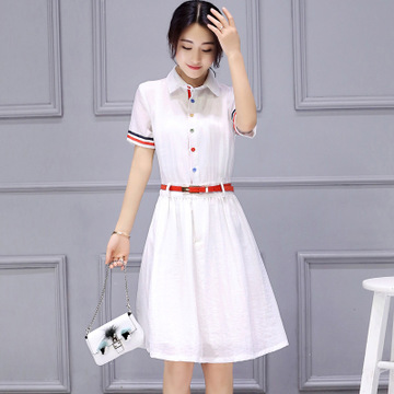 夏季韓版女裝兩件套連衣裙長款短袖圓領時尚松緊棉麻套裝裙女 /