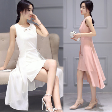 連衣裙無袖中長裙夏季裙子假兩件氣質名媛優雅時尚OL顯瘦大碼新款 /