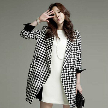 新款韓版小西裝女士中長款外套女裝 職業氣質修身西裝 /