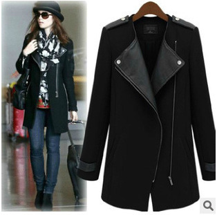 歐洲站歐美大衣新款秋冬拼接修身拉鏈中長款大衣女式風衣外套 /