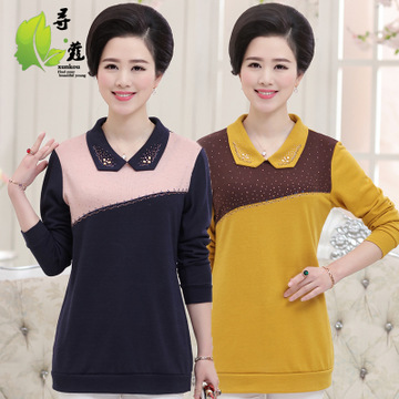 中老年春款媽媽裝30-40歲長袖方領T恤衫中長款打底衫一件代發 /