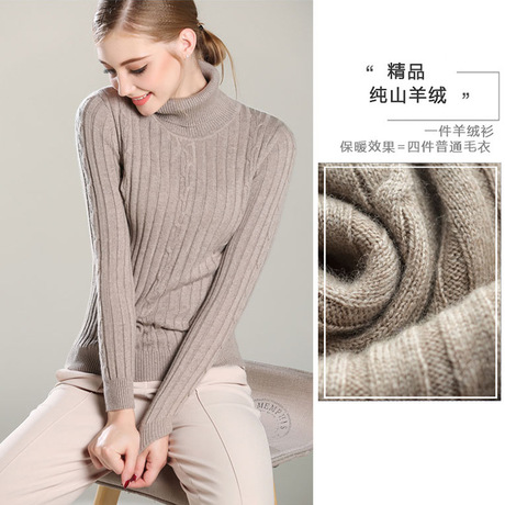 一件代發新款女士高翻領緊身羊絨衫韓版女修身羊毛衫毛衣針織衫 /