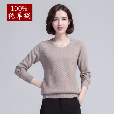 新款圓領純色羊絨衫女修身套頭短款羊毛衫打底衫毛衣針織衫 /