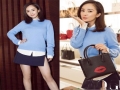 楊冪同款毛衣女裝秋冬季天藍色長袖100%純羊絨套頭針織衫 /