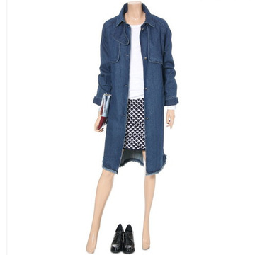 韓單女款長款牛仔風衣LESHOP新款 /