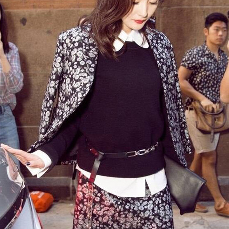 秋裝新款女裝楊冪同款時裝秀微博碎花休閑兩件 西裝外套裝女 /