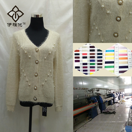毛織開衫手工釘珠外套優質馬海毛毛衣加工定制 /