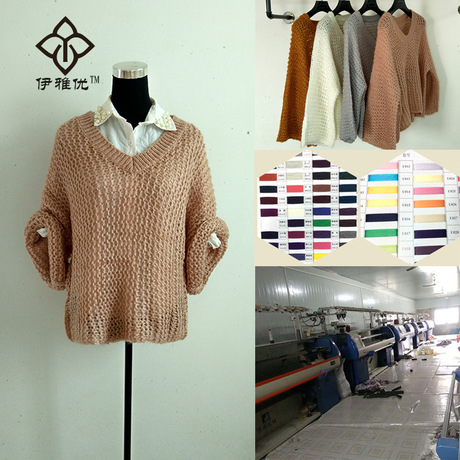 汕頭淘工廠毛織粗棒針寬松V領套頭馬海毛毛衣看板下單可來圖來樣 /