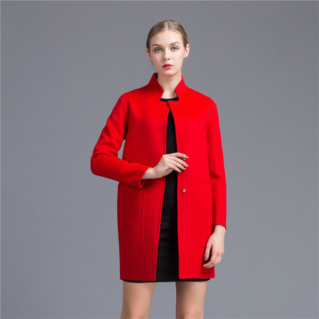 秋冬女裝新款 雙面羊絨大衣 全羊毛 中國風立領(lǐng)中長款風衣外套 /
