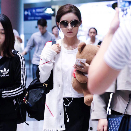 秋冬趙麗穎機場同款毛衣拼接下擺流蘇開衫中長款針織外套女 /