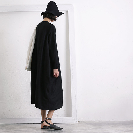 模樣出品 原創(chuàng)設(shè)計師品牌寬松獨特風(fēng)格文藝口袋設(shè)計長袖連衣裙 /