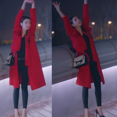 秋冬唐嫣高雯迪麗熱巴同款紅色長(zhǎng)款羊絨呢子大衣外套現(xiàn)貨 /