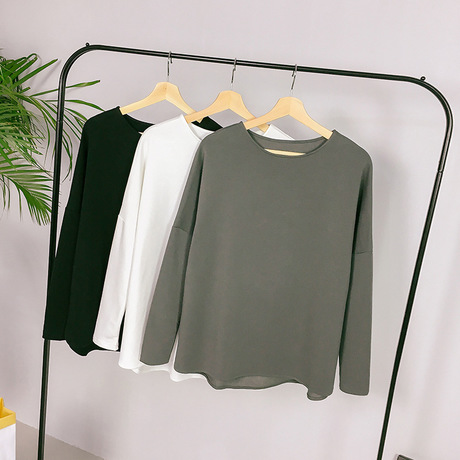秋季新款 韓版上衣長袖女式寬松T恤 外穿打底衫一件代發 /