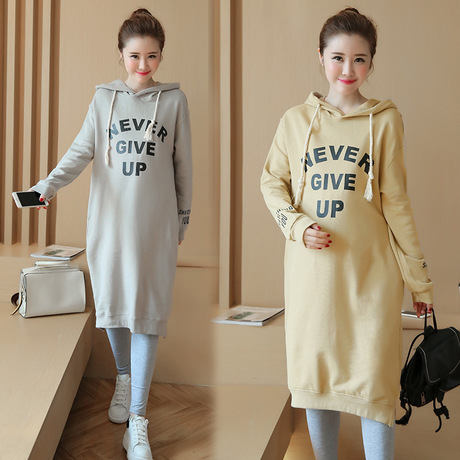 秋冬新款中長款連帽衛衣 孕婦韓版休閑衛衣裙 /