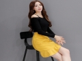 韓版女裝秋季新款套裝性感一字領長袖針織衫+荷葉中裙兩件套 /