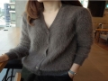 新款長毛水貂絨開衫 韓版女V領短款純色加厚毛衣長袖針織外套衫 /