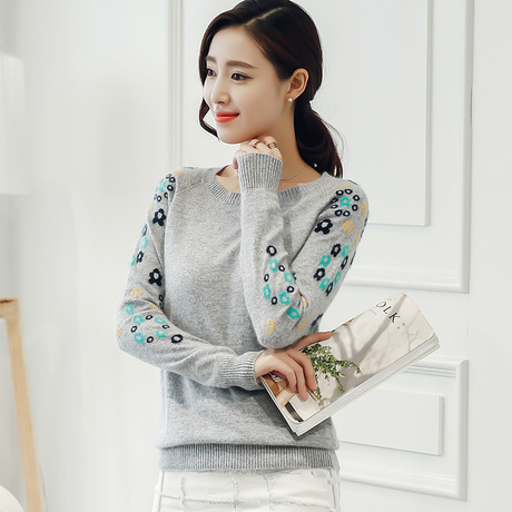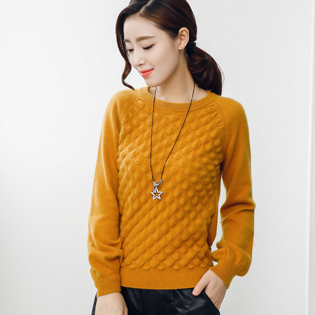 秋冬新款純羊絨衫女圓領套頭修身打底衫韓版加厚毛衣一件代發 /