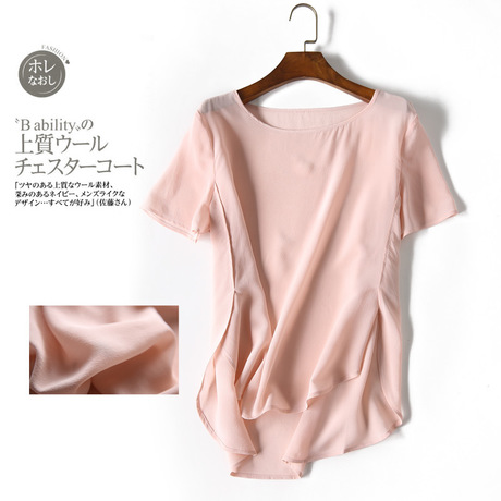 春夏新款 至簡設計 小寬松版真絲圓領短袖T恤女/不對稱下擺 /