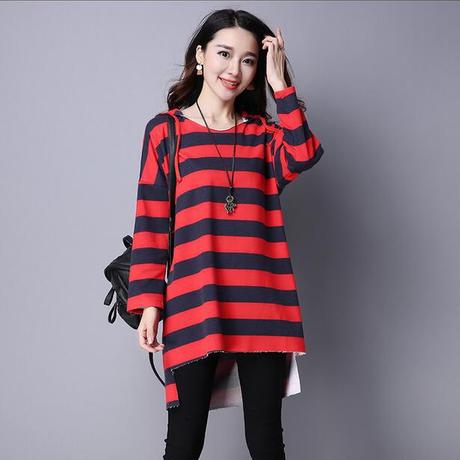 FP實拍秋冬新款胖MM顯瘦條紋連帽套頭連衣裙68616 /