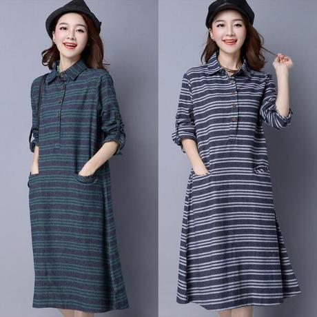 GK秋冬新款加厚磨毛條紋森女大碼連衣裙 打底裙896131 /