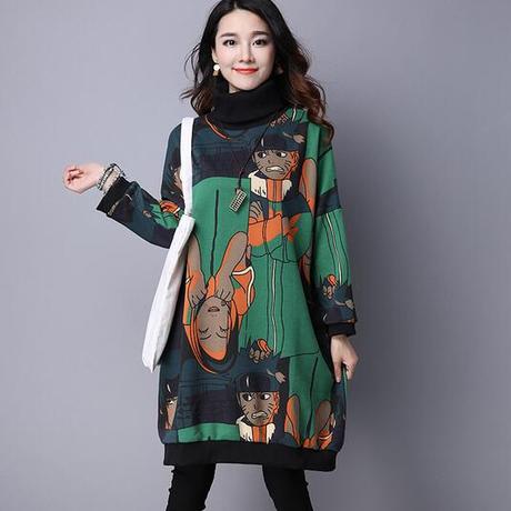 FP實拍秋冬新款民族風大碼高領中長款上衣68617 /