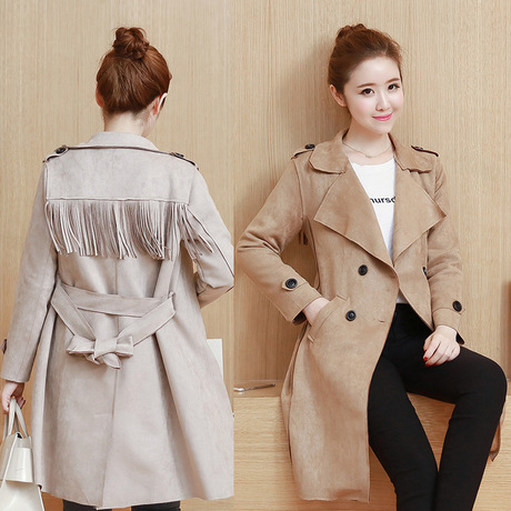 實拍秋裝新款修身麂皮絨風衣春秋韓版中長款鹿皮絨外套 /
