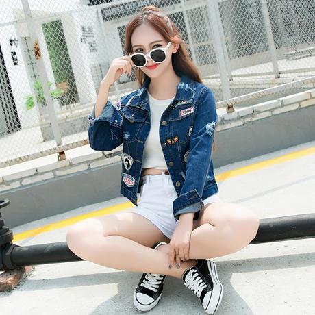 春秋裝新款長袖短外套單排扣重工修身牛仔外套女潮 /