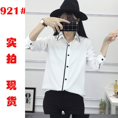 秋裝新款大碼時尚百搭學院風韓版顯瘦襯衫打底衫長袖襯衣女 /