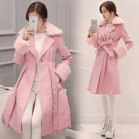 新款春季雙面呢修身長袖純色毛呢外套中長款呢子大衣 /