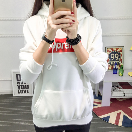 秋季新款韓版套頭連帽加絨加厚衛衣外套女 /