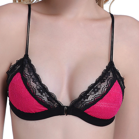 外貿無鋼圈蕾絲拼接性感內衣三角杯舒適超薄少女文胸 /