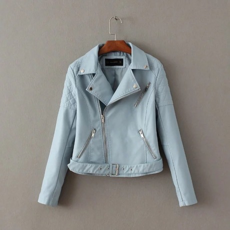 秋冬新款時尚百搭歐美風(fēng)斜拉鏈翻領(lǐng)短款機(jī)車皮衣 女 /