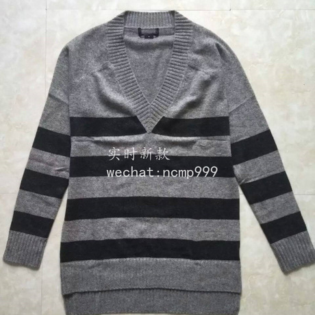 新品女士深V領條紋羊絨衫休閑羊毛衫 /