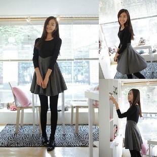 秋裝新款韓版修身顯瘦大碼打底裙拼接圓領(lǐng)大擺裙連衣裙 /