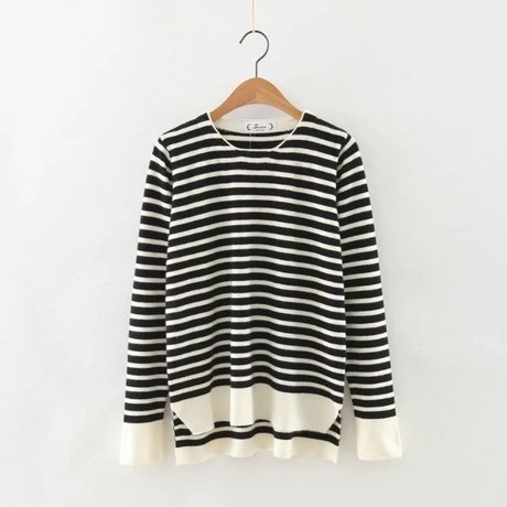 秋冬新款學生清新百搭寬松條紋長袖套頭針織衫毛衣女裝潮 /