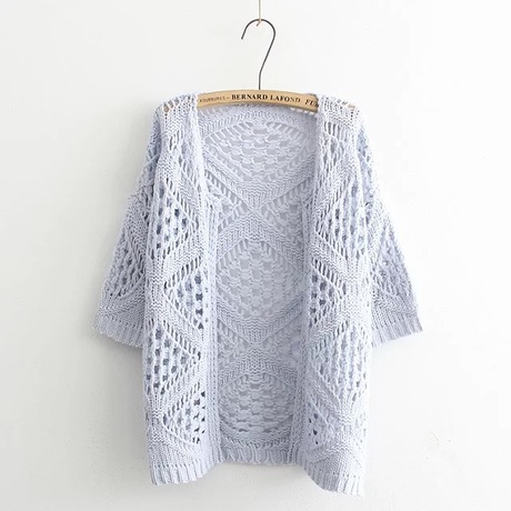 春秋新款空調衫時尚款鏤空針織衫女韓版短袖寬松開衫薄外套女 /