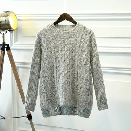 秋冬季韓版學生圓領毛衣女套頭馬海毛加厚寬松短款打底針織衫 /