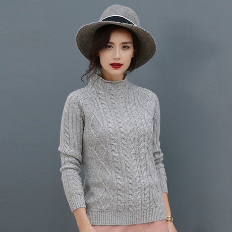 2016主打秋冬新款純羊絨衫女中高領(lǐng)麻花套衫 /
