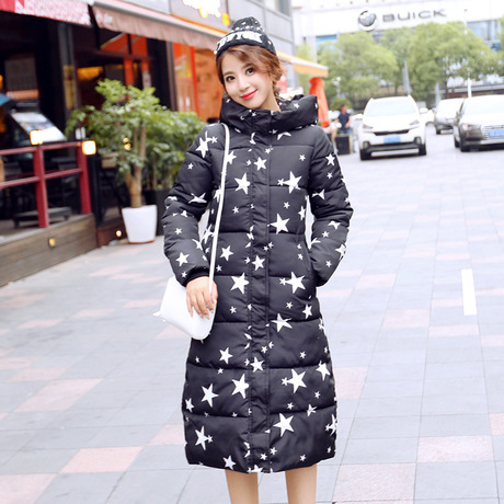 韓版中長(zhǎng)款修身五角星連帽開(kāi)衫外套女學(xué)生裝百搭棉衣 /