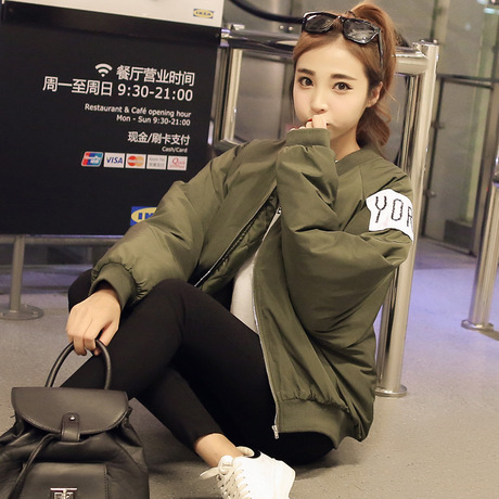 新款韓版秋冬款字母印花短款棉襖外套學生棉衣女裝 /