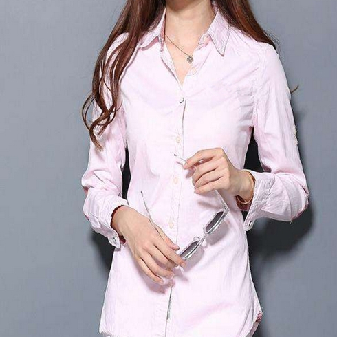 創美品-純色花邊領襯衫 /