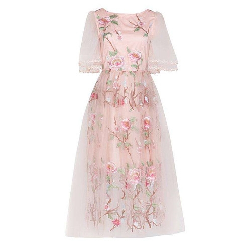 傲茉-網(wǎng)紗繡花連衣裙 /